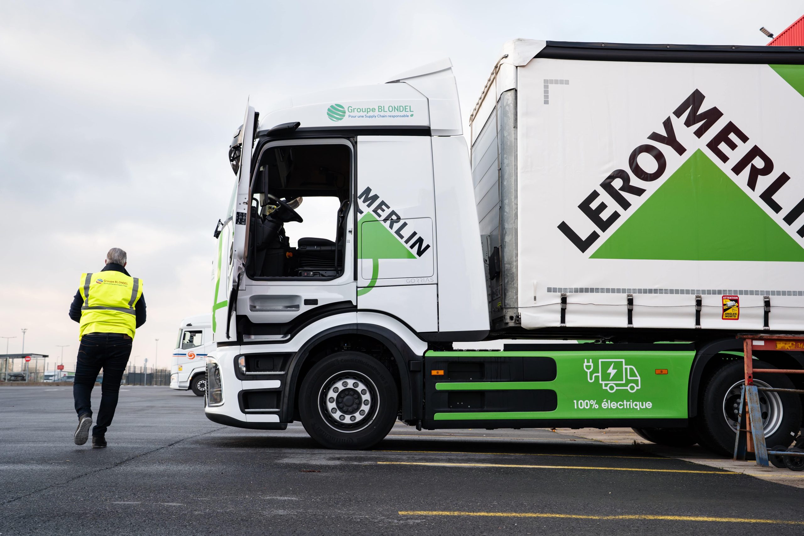 Pour réussir la transition vers un transport bas carbone, le chargeur Leroy Merlin, le prestataire de transport le Groupe BLONDEL et l’ensemble des partenaires, dont le plus récent Mercedes Benz Trucks, se sont alignés et alliés pour atteindre un modèle performant sur le plan opérationnel et conforme aux objectifs de réduction de CO₂. Au-delà de la flotte bas carbone structurée autour du meilleur mix énergétique, le Groupe BLONDEL et l’enseigne Leroy Merlin partagent le même ADN et la même volonté commune de faire évoluer le transport amont-aval vers 100% d’énergies alternatives.